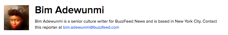 This is Bim Adewunmi. She writes for Buzzfeed: