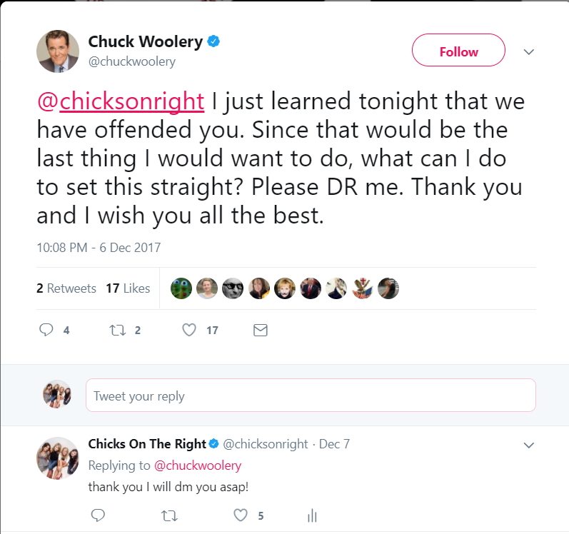 Chuck, with nearly ten times the following as the combined “Chick” Twitter account, truthfully cannot monitor all of the thousands of tweets sent to him daily. And he honestly does not engage with the countless people who tweet hate and destruction towards him, especially if he thinks he is punching down. Chuck is just not a bully.