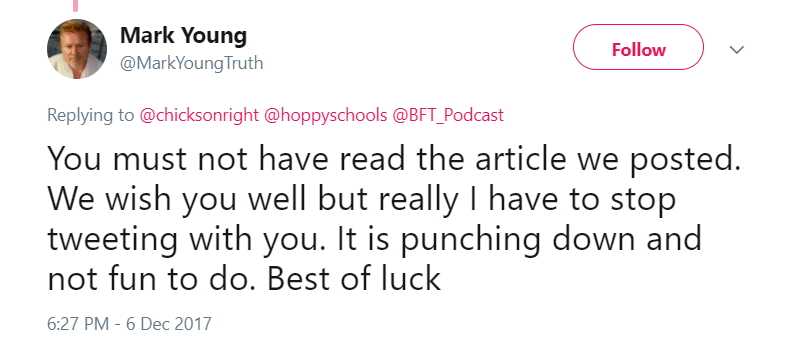 Yes – we did continue to tweet RESPONSES to all of their sheep followers who couldn’t understand what was really happening, particularly given that Mark was trying to paint US as the bad guys.