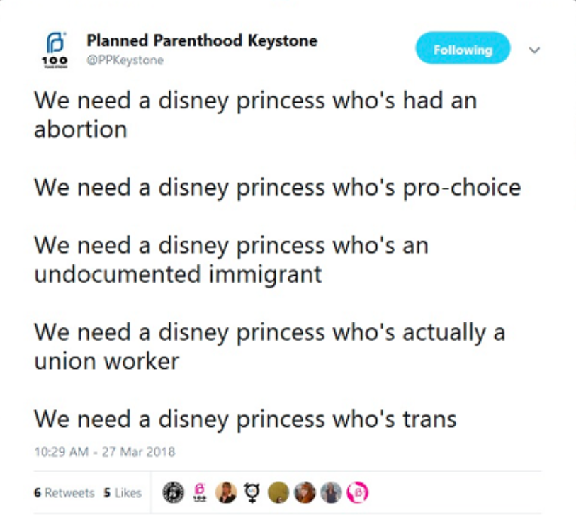 We need a Disney princess who stumps for sex-selective abortions on the taxpayer dime then lectures us about what small children they would have killed should watch for entertainment https://t.co/957a8YQAly