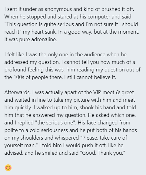 It was a funny question, and he approached it with humor, but he also kindly recognized the legitimacy of it, given how easy it is for people to become star-struck and sucked in by people who they view as larger-than-life.