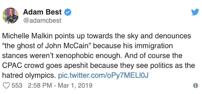 ANYWAY. Michelle Malkin was one of the speakers this year. She’s facing a ton of backlash for speaking out against the “ghost of John McCain” during her CPAC speech.