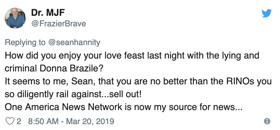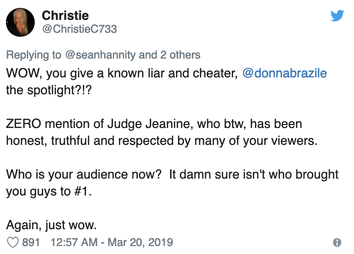 Fox News Viewers Turn Channel Off in Disgust After Seeing Hannity’s Warm Welcome for Donna Brazile