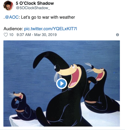 Someone’s going to have to walk me through this, because it sounds like Alexandria Ocasio-Cortez wants to declare war on the weather.