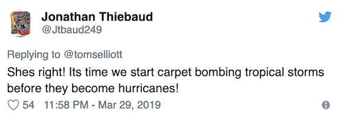 Um…one was a deliberate attack. The other was a natural disaster. I don’t think it’s fair to compare the two. It’s more than apples and oranges. It’s potato salad and salsa. Also, it sounds like AOC wants to wage war against the weather, which is awk. I know she probably didn’t mean it that way (yes– I’m giving her the benefit of the doubt on this one), but man. The jokes write themselves.