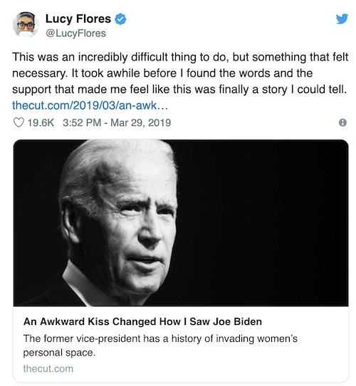 “No. I don’t recall giving her an unwanted kiss but also she’s totally entitled to make that allegation. I respect a woman’s decision to make up stories about me.” – Biden, basically.