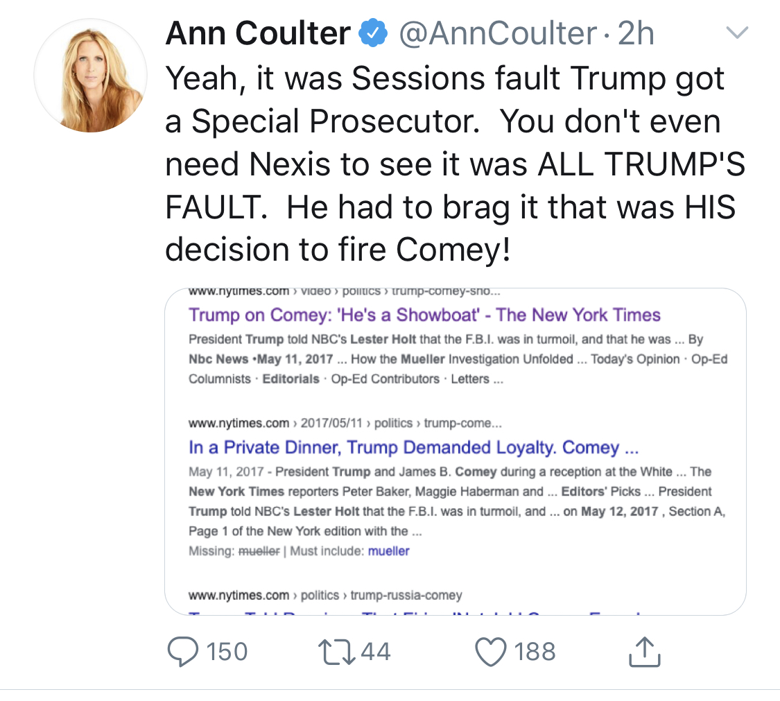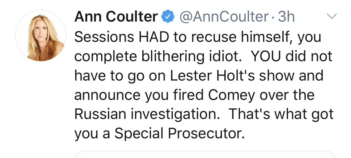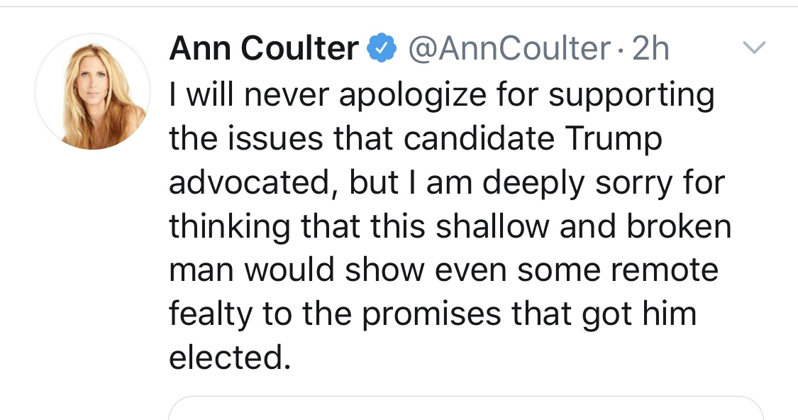 And Ann Coulter WENT OFF. I think it’s safe to say, she no longer feels, In Trump We Trust, as her past book title suggested.