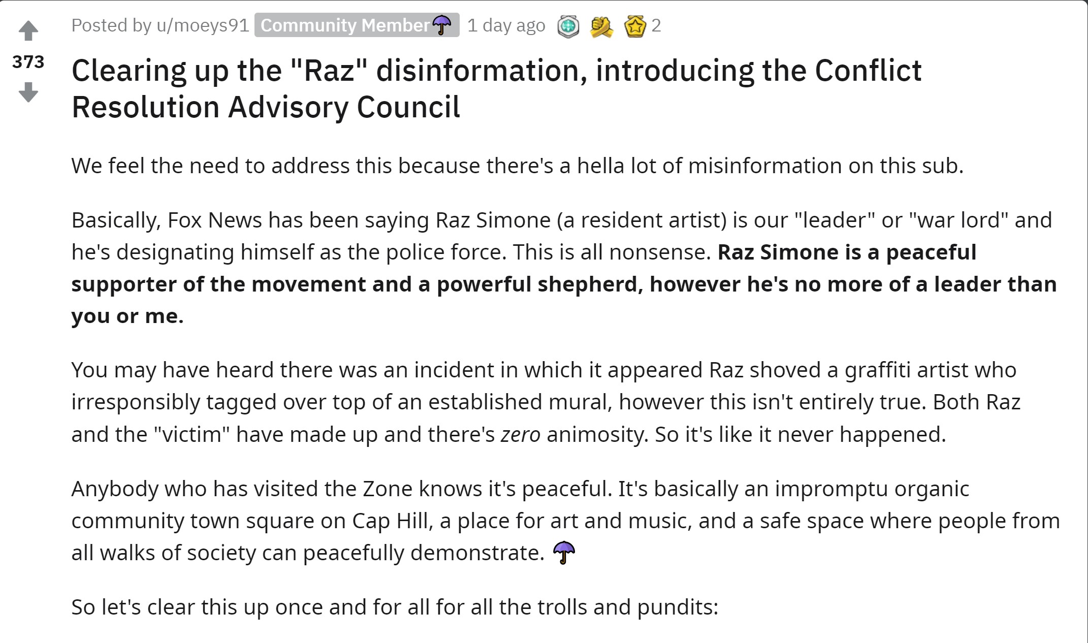 Because everyone in CHAZ is so absolutely batcrap, it’s hard to discern what’s real and what’s fake when it comes to some of the stories about them and their demands. But this post on reddit, regardless of whether it’s real or parody, is PRICELESS COMEDY, y’all. You’re gonna love this.