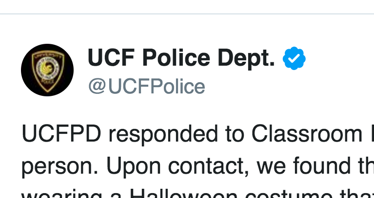 All-Clear Issued At UCF After Halloween Costume Scares The Crap Outta Everyone