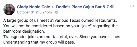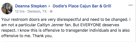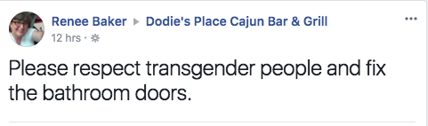 Dodie’s Place Cajun Bar & Grill in Allen, Texas, showed off its updated bathroom doors in a Facebook post in August.