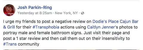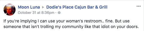 They’re calling him a woman though, right? That’s generous! Why are people offended? They’re saying trans people can use the women’s restroom! Isn’t that what they wanted?
